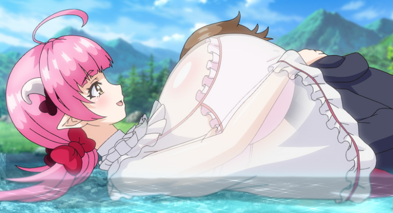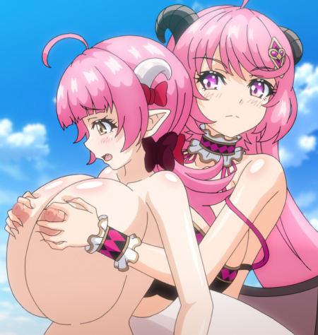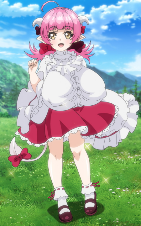 They decide to go to a nearby village in search of clues to return him to his original world. There, a small minor succubus appears. She looks innocent and cute, but she is still a perverted succubus. Her boobs are disproportionately large.