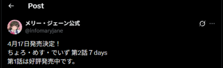 Through their official X account, the popular studio announced that the second installment, based on the doujinshi “7 days”, will be released on April 17.