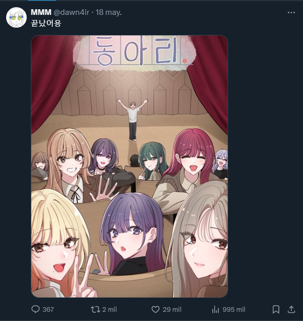 The artist shared the news on their X (formerly Twitter) account with an illustration showing all the girls alongside the protagonist in a theater setting.