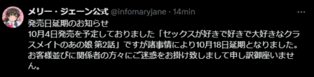Bad news, guy. Sex ga Suki de Suki de Daisuki na Classmate no Anoko, the new hentai from Mary Jane that debuted a few days ago, has announced that the release date for its second OVA will be postponed. This news was announced by Mary Jane on their official X account.
