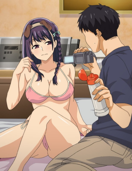 On the day of filming, as they shoot, Taichi begins to feel like they are actually on a date, which in turn gives him conflicting feelings as he realizes that she isn’t really his girlfriend. Unaware of Taichi’s feelings, Kanan heads to the next location: a love hotel. While Taichi is bewildered, Kanan puts on a sexy swimsuit, prepares a mat and lotion, and they start getting ready for the porn film.