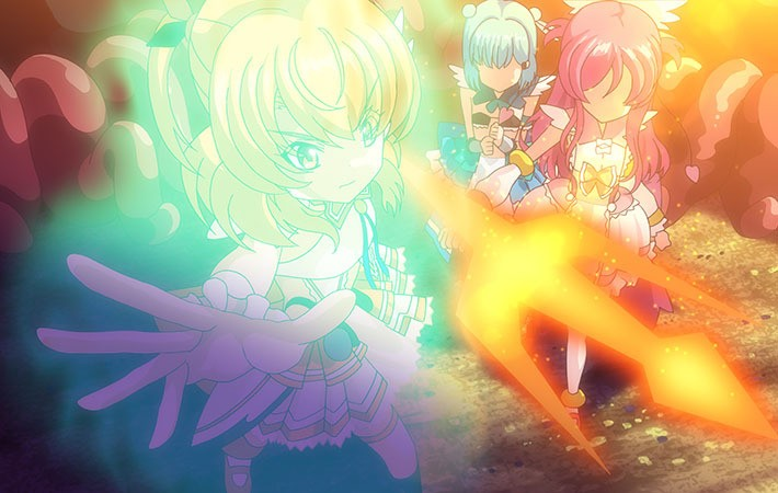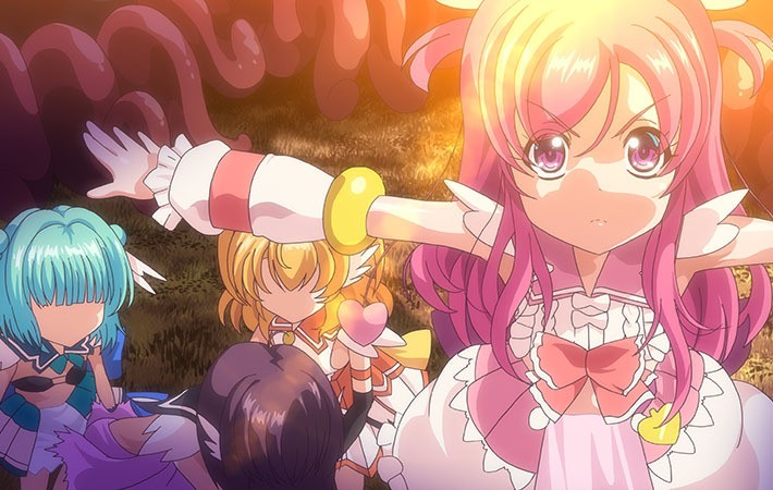 At Etoile Private School, in the journalism club, Runa, Reina, and Miyu activate the Angel Maker app, which triggers a tragedy. They become magical girls and fight against deformed monsters, but one day, they are captured and raped by them. Magical girl Erika rescues them but warns that continuing to fight will attract more attacks. It turns out the app has been cursed by fallen angels. Erika fights against them, but her heart becomes corrupted.